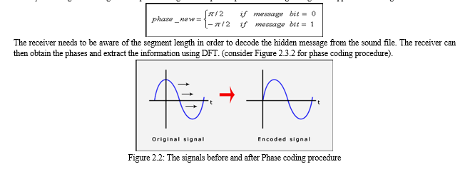 The phase of an initial audio segment is replaced with a reference phase that represents the data in the phase coding method. The relative phase between segments is maintained by adjusting the phase of succeeding segments. When it is possible, phase coding is one of the coding techniques with the highest signal-to-perceived noise ratios. There will be audible phase dispersion if the phase relationship between each frequency component is drastically altered. However, an inaudible coding can be achieved as long as the phase modification is sufficiently small (sufficiently small depends on the observer; experts in broadcast radio can discover adjustments that are unperceptible to an average observer). Phase coding is based on the idea that noise is more detectable to the human ear than the phase components of sound. The method achieves an inaudible encoding in terms of signal-to-perceived noise ratio by encoding the message bits as phase changes in the phase spectrum of a digital signal as opposed to adding disturbances.