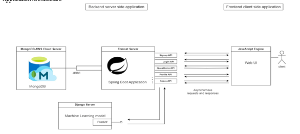 The random forest classification model is hosted on a Django server on the same server machine. It offers the ‘/predict’ API to where post requests are received from the Spring-Boot application which contains the test scores, and it will return a response containing the suggested domain in JSON format.