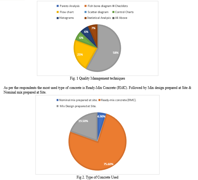 The implementation of a highly effective quality management technique, namely the utilization of checklists, has been observed at construction sites. Ready-Mix Concrete (RMC) is the prevailing type of concrete utilized. Findings from the respondents indicate that quality control, safety measures, and personnel training are extensively practiced in large-scale construction projects, while they are often overlooked in small-scale construction sites. Customer satisfaction has emerged as the paramount aspect for upholding a robust Quality Management System (QMS). Additionally, the quality of materials employed in all construction activities has been identified as the most frequently employed quality control measure.