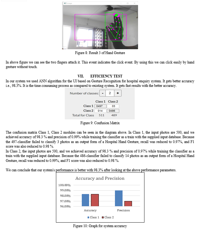 To think accessible movement affirmation structure and perceive how classifier changes over hand movements into huge orders. Cultivated a program for treatment of gotten picture. To sort out some way to made UI using Django. To focus on different steps of picture taking care of and execute them in Python. Touchless marks of communication are substantially more essential in the hour of COVID-19. We\'re cautious with regards to contact like never before, a hatred at risk to proceed until a reasonable counter acting agent opens - and potentially past. The system will grant customer to enquire concerning different wards, availability of the trained professional/master, etc. Uses of PC information development are at this point facilitated with center and activities. Clinical facility records are modernized; imaging gadgets like MRI, PET, and CT, to give a few models, are totally dependent upon PC advancement. Clinical gadgets that exactly recuperate and inspect data have saved lives. In any case, PC information development\'s normal use in Operating Rooms and Intensive Care Units isn\'t totally extended since PC advancement presents a couple of issues that may opportunity patients\' prosperity.