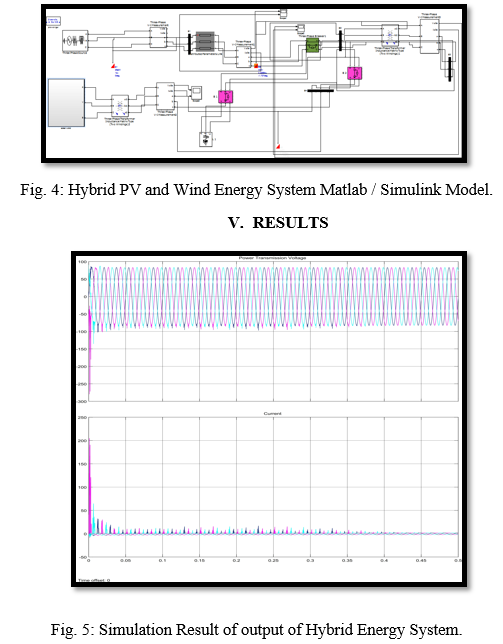 The system works at normal standard temperature and radiation from sun and the normal wind speed availability. Combining these techniques such as converters, inverters, transformers, controlling techniques like PI, PWM for internal operations it can develop a hybrid system. This hybrid system is developed and modelled in Matlab/Simulink software with the help of Matlab block sets.
