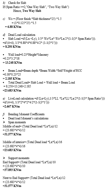 This Excel sheet considers only the gravity loads. Grids in X and Y directions are defined in the sheet. User can enter distance between grids. Loads on various elements of the buildings such as Beam and Slab are calculated manually.The same building was modelled and analysed using E-tab also.