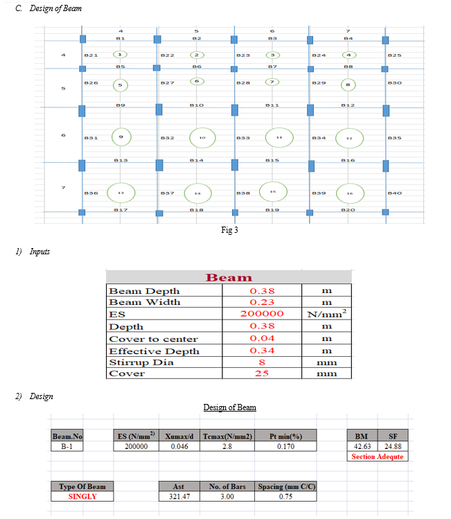 Analysis and design of RC structures using FEM based software package needs basic knowledge of that software. This project focuses on developing a excel sheet with simple user interface to analyze and design RC structures without any prior knowledge of software. This excel sheet considers only the gravity loads. Grids in X and Y directions are defined in the sheet. User can enter distance between grids. This sheet provides design of footing and column.