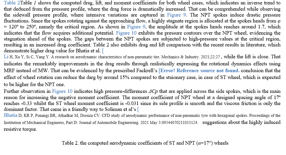 Li H, Xu Y, Si C, Yang Y. A research on aerodynamic characteristics of non-pneumatic tire. Mechanics & Industry. 2021;22:27. focused on a comparable NPT wedge type and another basic hexagonal honeycomb form.