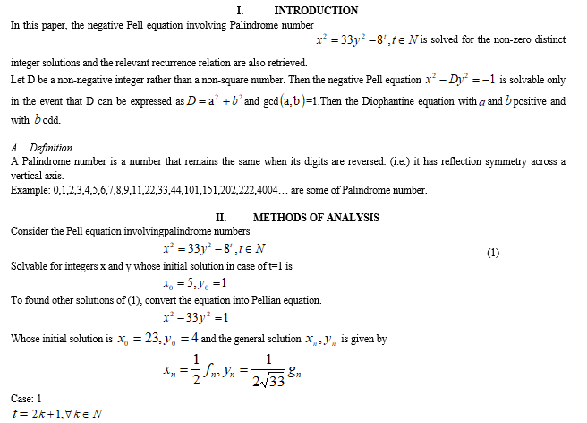 The objective of the article is to find an integer solution that is non-zero for the negative Pell’s equation involving Palindrome number