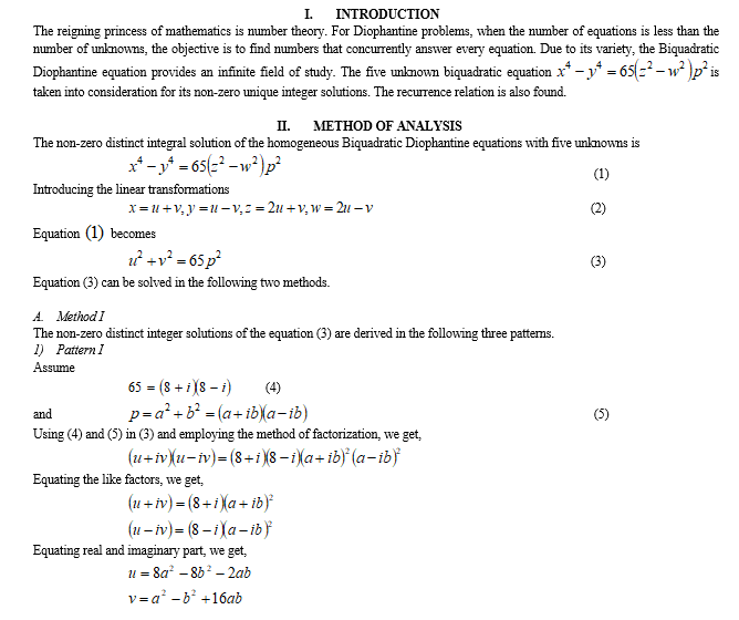 [10] Gopalan M.A and Kalingarani J, Quartic equation in five unknowns , Bulletin of pure and applied sciences, Volume 28, issue2, 305-311, 2009.