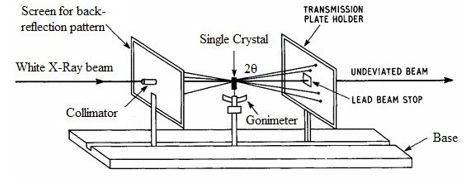 The Laue method is mainly used to determine the orientation of large single crystals. By the incident, radiation is reflected from, or transmitted through, a fixed crystal. It provides information about the structure of an area with a diameter of about 1.5 mm.
