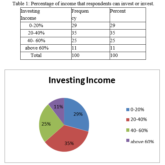 Majority (35%) of the respondents prefer to invest 20-40% of their income.