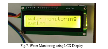 The hardware implementation of this proposed system is made and monitoring the water flow and water theft identification in domestic appliance. The output results of this proposed system is displayed in the LCD screen and also got mobile notification regarding water speed is high during theft process occurred at a time. Fig.6. shows the hardware implementation of the domestic water supply system. In this system water flow sensor is used to measure the flow of water at various points in the water supply network.