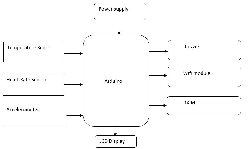 For illustration heart rate is measured through a Photoplethysmography. A transmitting module is attached which continuously transmits the decoded periodical data using Bluetooth module.