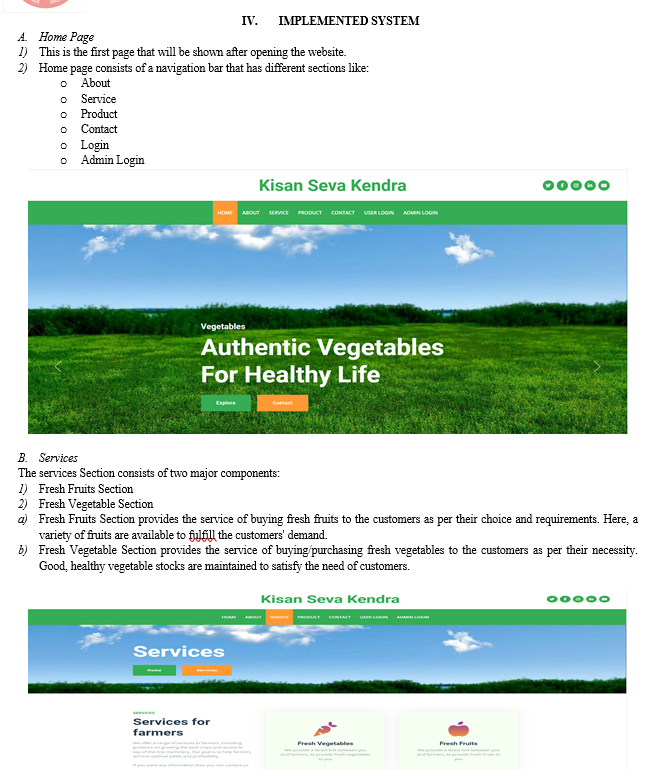 [2] Agricultural Web Service Swarupa Chinchalikar*1, Nandini Honmute*1, Yashashri Kavathekar*1, Rucha Sadolkar*1, Priyanka Chougule*2 International Journal of Research Publication and Reviews Journal homepage: www.ijrpr.com ISSN 2582-7421