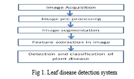 Leaf diseases can be identified by observing leaf of plants. Image processing is performed on the images of leaves from the dataset. The image processing technique involves five basic steps and a data flow diagram is shown below in Fig 1.