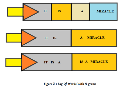 Figure 3 Explanation : Bag-Of-N grams Model is extensively used in text mining and NLP tasks. A contiguous sequence of n items from a given sample of text is referred as n-gram. Unigram is n-gram of size 1,bi-gram is of size 2 and tri-gram is of size 3.