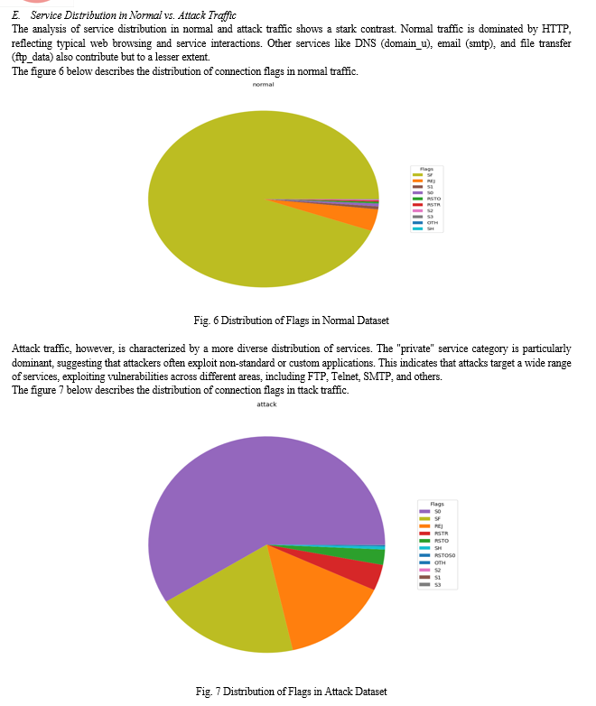 The comprehensive analysis conducted in this study underscores the critical role of Network Intrusion Detection Systems (NIDS) in safeguarding networked environments from a plethora of cyber threats. Through the meticulous evaluation of network traffic, the NIDS framework demonstrates its efficacy in identifying both common and sophisticated attacks. The study’s findings highlight that robust security measures at the network level are indispensable for modern organizations, given the escalating complexity and frequency of cyberattacks. One of the pivotal discoveries of this research is the exceptional performance of the RandomForestClassifier. With an impressive accuracy rate of 99.31%, this classifier not only showcases its capability to distinguish between normal and malicious traffic but also emphasizes the importance of leveraging advanced machine learning algorithms in NIDS. The consistency of the RandomForestClassifier, as evidenced by its narrow interquartile range, further validates its reliability across different datasets and experimental setups. The detailed traffic analysis, encompassing ICMP, TCP, and UDP protocols, reveals distinct patterns that are crucial for developing targeted defense strategies. The dominance of certain attack types in specific protocols, such as the prevalence of Smurf and Portsweep attacks in ICMP traffic, or the diverse array of attacks in TCP traffic, underscores the necessity for protocol-specific security measures. The nuanced understanding of these patterns enables more precise anomaly detection and mitigation strategies, enhancing the overall effectiveness of NIDS. Moreover, the study\'s examination of service distribution in normal versus attack traffic provides valuable insights into attacker behavior. The stark contrast between the service usage in normal traffic and the diverse exploitation of services in attack traffic, particularly the frequent targeting of non-standard services, highlights the attackers\' adaptive strategies. This insight is critical for network administrators to prioritize the security of lesser-monitored services and implement comprehensive security policies. The practical implications of these findings are profound. Network administrators and cybersecurity professionals must not only focus on deploying robust NIDS but also ensure continuous monitoring and adaptation of these systems to evolving threats. Integrating Network Intrusion Detection Systems (NIDS) with other security measures like firewalls and Security Information and Event Management (SIEM) tools is crucial for a robust defense strategy. This integration offers a comprehensive view of the security landscape, enhancing the efficiency of threat detection and response. Additionally, the effectiveness of NIDS heavily relies on the expertise of the personnel managing them. It is vital for network administrators to receive continuous training and skill development to accurately interpret alerts, refine detection algorithms, and respond promptly to incidents. As technology evolves and the network environment becomes more complex with the rise of IoT and cloud computing, the importance of skilled personnel in managing NIDS will grow. In conclusion, this study reinforces the indispensable role of Network Intrusion Detection Systems in modern cybersecurity frameworks. By providing a detailed analysis of network traffic and demonstrating the efficacy of advanced machine learning algorithms like RandomForestClassifier, the research offers valuable contributions to the field. The insights gained from the traffic and service distribution analyses inform the development of more effective security measures, emphasizing the need for continuous innovation and adaptation in NIDS technology and strategies. As cyber threats continue to evolve, so too must the defenses, ensuring that organizations can protect their critical information assets against an ever-changing threat landscape. This underscores the study\'s key findings on the critical role of NIDS in modern cybersecurity, the effectiveness of machine learning classifiers, and the necessity for ongoing adaptation and expert management to safeguard networked environments.