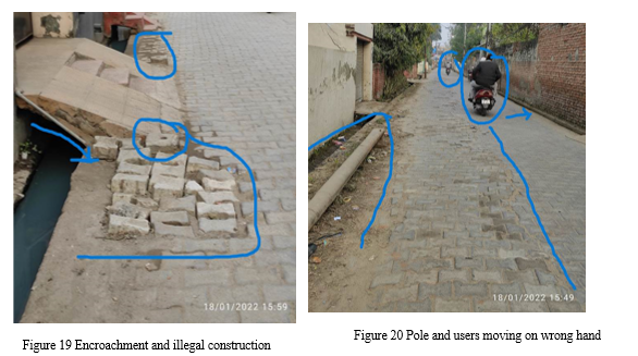 f) Road width is becoming shorter due to encroachment on-road and entrance of the house are on the road. Figures 17, 18 & 19