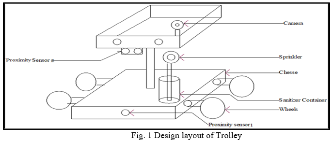 Use of above mentioned software for Dimensional accuracy, Mechanical stability, Simulation of trolley manufacturing purposes. The trolley controlled by a microcontroller module unit. It can stop, turn right, turn left, forward and backward. It can follow wherever they go, during they were in range. The designed robot can be easily controlled by sending the commands to the micro controller from anywhere from the world. These commands can be observed by using Attention commands and acceptable action is taken. To overcome the issues like direct contact with patients in Covid-19 wards, we will develop a robot i.e., corona warrior robot which will be used to provide medicines to patients and sanitize the person when any person comes in front of the robot.