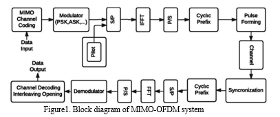To improve system efficiency, MIMO and OFDM techniques are integrated. Especially under difficult channel circumstances, MIMO-OFDM is employed to boost channel capacity. In 4G mobile wireless systems, this is acknowledged to be one among the more economical technologies [1]. Spatially multiplexed MIMO has been shown to boost throughput; yet, if greater throughputs are targeted, the MIMO multipath channels' environment become frequency-selective. By converting a MIMO frequency-selective channel onto parallel frequency-flat MIMO channels, OFDM offers the advantage of increasing frequency effectiveness. Due to the incorporation of two technologies, it may include more antennas. Receiver complexity is able to reduce by becoming accustomed to MIMO-OFDM. Many emerging wireless technologies might employ this. Its BER is poor.