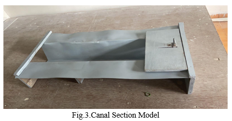 a. After the completion of design features , we moved on to the next step of model making. As we selected the Trapezoidal Canal for the system, We made a compact model showing the desired requirement of all the aspects we needed. With the use of GI sheets, canal section is made which can sustain at the pressure of water. The Supportings are provided to the model for more strength and durability.