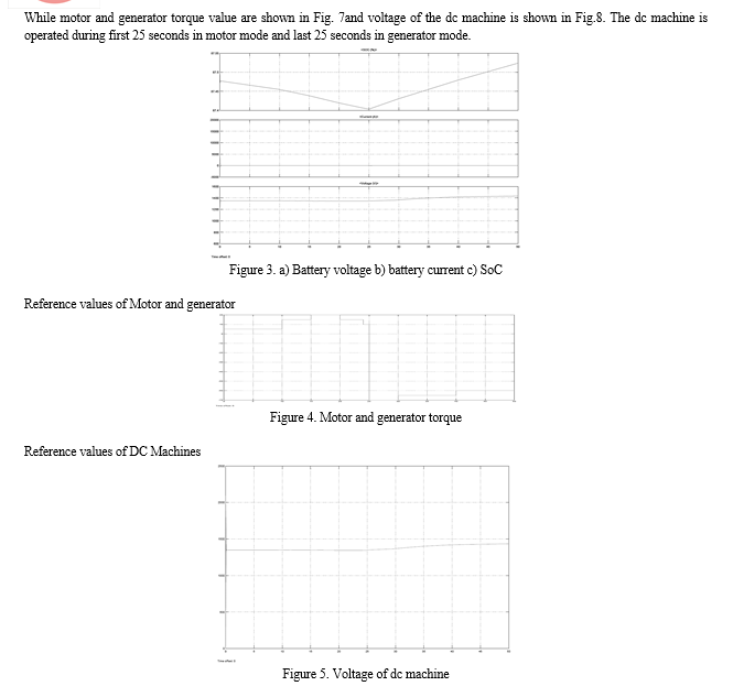 Similarly, battery parameters such as SoC, current, voltage and voltage of the dc machine are observed in the generator mode simulation regarding to various torque values applied to dc machine. The battery specifications are given in Table 1.