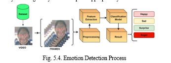 The video recording is converted into a picture. The webcam image is preprocessed to remove facial expressions and turn them into a string of Action Units (AUs). combining 64 AU, (FACS) traits to identify each face. Facial emotions like joy, rage, sadness, and surprise are categorized after feature extraction. Web services are integrated with them.