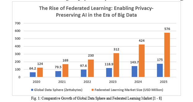 The global federated learning market is expected to grow from $124 million in 2020 to $1.48 billion by 2028, at a compound annual growth rate (CAGR) of 36.6% during the forecast period [9]. The demand for privacy-preserving AI solutions is rising across industries, particularly in healthcare, finance, and telecommunications [10]. For example, in healthcare, federated learning has been applied to develop ML models for predicting hospital readmission rates, achieving an area under the curve (AUC) of 0.76 without directly accessing patient data [11].