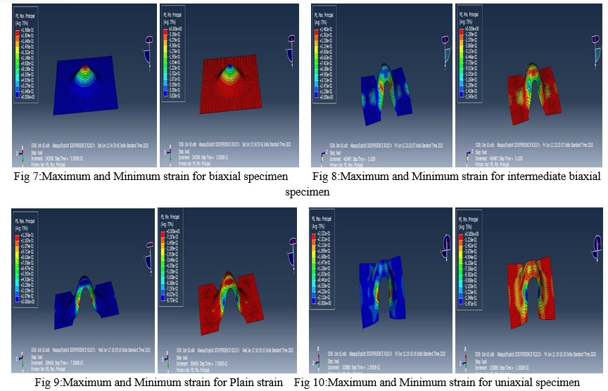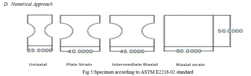 Uniaxial, Plain-strain, Intermediate-Biaxial, Biaxial strain specimens are used according to ASTM E2218-02 standard. CAD models of Punch, Die, Holder were designed and numerical investigation was performed by using Abaqus Explicit software. Thus, simulation for above mentioned specimen was performed and values for maximum and minimum strain were calculated. Velocity of punch was 0.05mm/s and time period was 10 sec.
