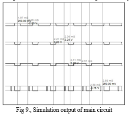 Inference: From this we have inferred that the output voltage of the final circuit would be around 4-4.40V.This voltage range is the threshold voltage of any IGBTs gate circuits. So from this the IGBT in the inverter can be triggered.