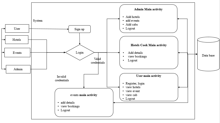 The proposed system provides a centralized platform for managing hotels, events, and cabs, allowing for easy service discovery and booking. Administrators can effortlessly add, update, and manage offerings, while users benefit from a cohesive interface for exploring and reserving services. This platform boosts operational efficiency, enhances user experience, and simplifies interactions between service providers and users, creating a more streamlined service ecosystem.