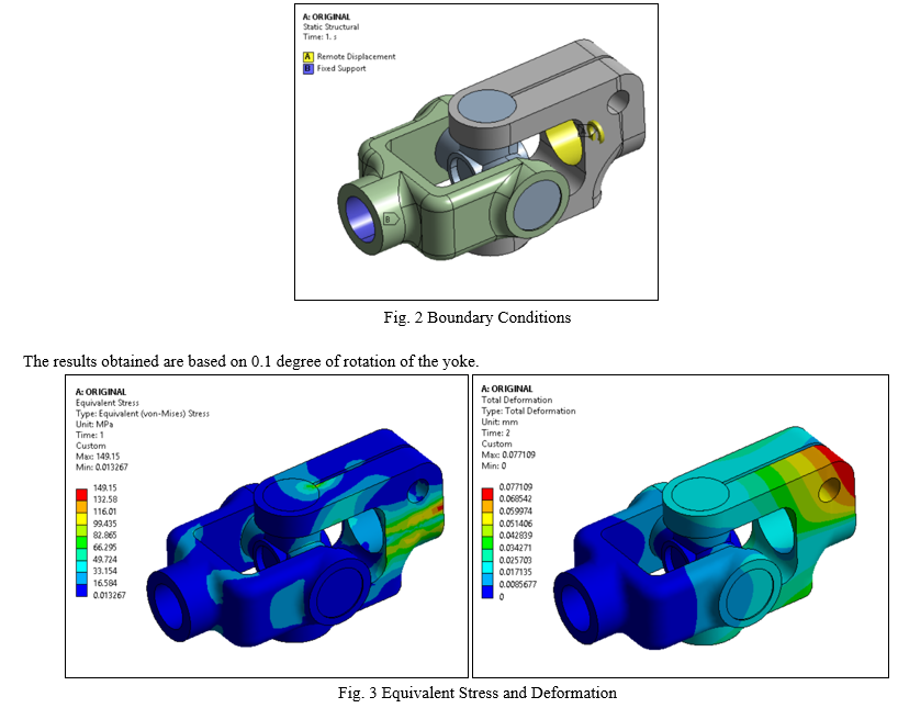 3) The stress analysis of the yoke is completed by using static structural analysis with the help of ANSYS software.
