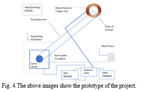 The project makes use of various modules to determine the impact and then responds accordingly. First component that comes into the picture is the metal detection system. The component at its core uses a copper coil to detect if there is any contact with the metal. If there is a change in the wave amplitude, then the Arduino UNO understands that the impact has occurred.
