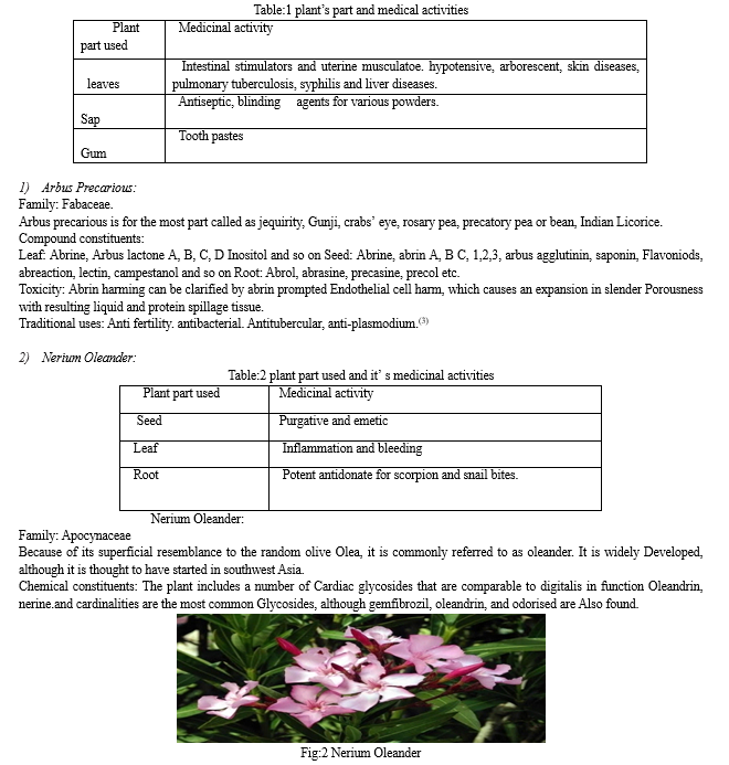 India has rich and varied flora just like its culture. Plants are so amazing and beneficial for human being in every aspect. without plants life is not possible on earth. Plant and flowers are also used for decoration of home as ornamental, some plants are poisonous in nature. Beautiful flowers and plants may have toxic properties. Inhabitant of rural area dependent on their forms and garden for foods may have poison. Many species of toxic plants have been reported from different plant families. Mostly the poisonous parts of toxic plants have been reported to be seeds, root, root bark, fruits, stem, stem bark, tubers, bulbs and sometimes whole plant. Poisonous nature of plant may be due to the presents of Alkaloids, Glycosides, and Mineral, Oxalate, Photosensitizing compound, toxic polypeptide or amine.