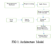 The Utilization of pomegranate and pomegranate normal item sickness find utilizing machine stallion, especially the CNN calculation, at the side a carafe web application, has showed up promising comes approximately. The system centres on the acknowledgment of three illnesses: borer, and bacterial revile, also classifying sound natural products. By utilizing the CNN calculation, the illustrate can remove imperative highlights from pomegranate and pomegranate common item picture, allowing it to recognize between strong characteristic items and those affected by specific infections. The utilize of CNNs is particularly fruitful in picture classification assignments due to their capacity to capture