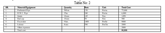 Total Estimated cost for construction of sub surface drainage by modified drainage method is Ninety-five thousand nine hundred fifty rupees.