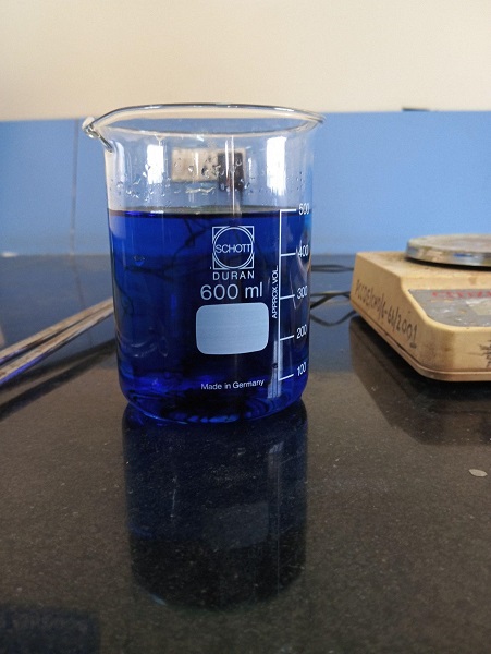 - Add 0.5 g of tea waste powder to 100 ml methylene blue solution.