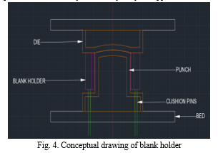 Our main aim is to control the flow of material. We have to develop the area where material is going to hold. It is possible by Blank Holding Concept .Blank holder is used to hold the part of material. The function of which is to facilitate controlled material flow into the die radius.