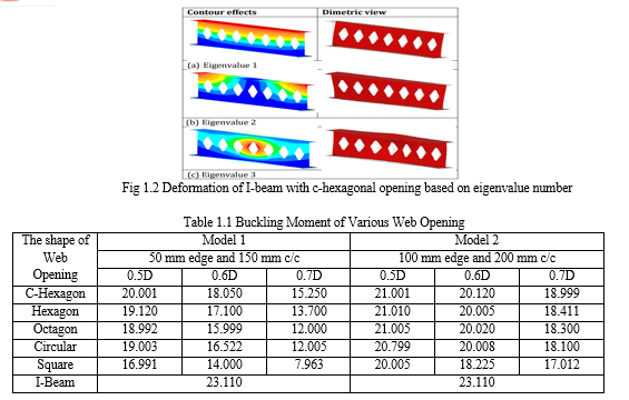 The numerical analysis consists of two main models of I-beam with different types of web opening and without web opening. To study the buckling behaviour, five types of web opening models were derived by varying the shape of the web opening.