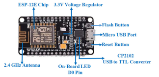NodeMCU can be powered using a Micro USB jack and VIN pin (External Supply Pin). It supports UART, SPI, and I2C interface.[20]