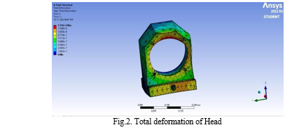 Total deformation of End Cap:It is found that total deformation alone x axis1.052* 10-7 Maximum. Total deformation generated on mild steel while 1.1694*10-8 Minimum.