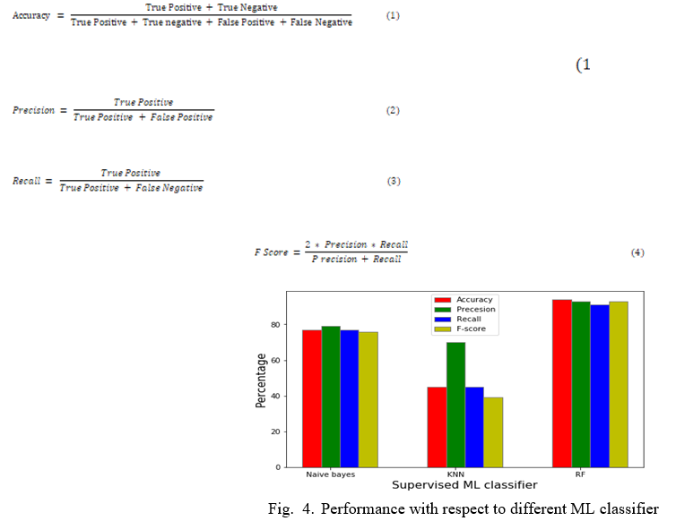 We used 179k tweets to classify the sentiment of the tweet. For prediction purposes, we used 80k classified tweets to train the model and then tested it using three supervised ML classifiers. These are the RF, NB, and KNN classifier. The system is tested for this four parameters-Accuracy, Precision, Recall, F score.