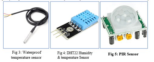 In figure 10 the circuit diagram and the connectivity is shown. To connect the soil moisture sensor to the A0 pin of Node MCU and DHT22 to the D4 Pin. DS18B20 temperature sensor to D6 pin. PIR Motion Sensor to D3 pin.