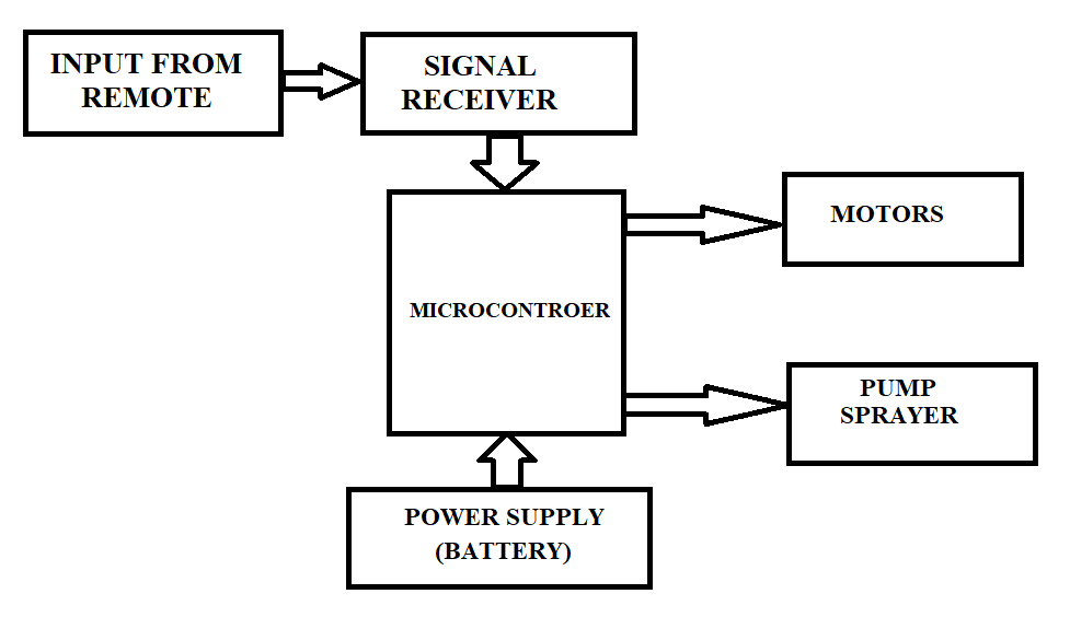 The components of this system are the driver module, prototype, power supply, and RF transceiver. DC gear motor, battery, RF controller, and vehicle module. The primary element of the Motor driver (L298N), is also referred to as the "heart" of the entire system framework. Pesticides are sprayed with a sprayer; sprayers are frequently utilized for the projection of water, pesticides, weed eaters, etc. In this instance, L298N