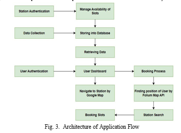 Integrating the Folium Map API into the project brings about an interactive mapping solution that greatly enhances the user experience and functionality of the application. By leveraging Folium within Flask, developers can dynamically generate maps with customizable features such as markers, popups, and tile layers. For instance, charging station locations can be visually represented on the map through markers, providing users with a clear visualization of available facilities. Additionally, customization options allow for the inclusion of interactive elements like route planning and real-time data visualization, contributing to a more engaging and informative user interface. Overall, Folium integration empowers Flask applications with powerful mapping capabilities, facilitating efficient navigation, location-based services, and data visualization for various purposes, including electric vehicle charging management.