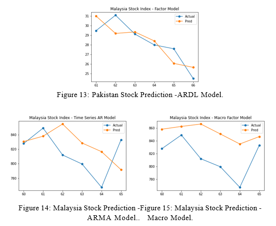 The three linear regression models described in Methodology section were fitted to the stock and macroeconomic data of the three South Asia countries: India, Pakistan and Malaysia. The results of AdjR2 and stock market direction prediction results for each model and country is tabulated below.