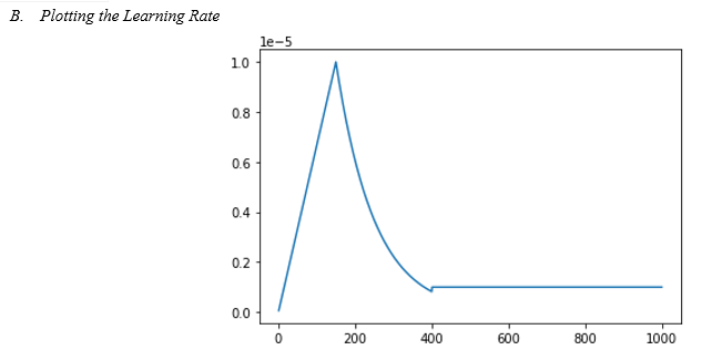 We created a scheduler function that takes in the number of epochs and sets a custom learning rate and then we passed on the Learning rate scheduler function of keras via the tensorflow module . The code for the scheduler is as follows .