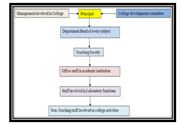 In college higher education system role of academic bodies like head of the institution, head of departments of each faculties, incharge of every discipline, teaching faculties, mentors, councellors, office administrative staff including clerk, headclerk, office superitendant and registrar is vital and prominent to plan and execute every rules and regulations, to follow the best path for stakeholders, to implement education policies governed by Indian organizations like University Grants Commission (U.G.C), Rashtriy Ucchatar Shiksha Abhiyaan (R.U.S.A) and Universities in contact to higher education. The head of the academic education is termed as Principal who is the solely responsible to manage every scheme implemented by Higher Education Instititions (H. E. Is), Government Institutions, Indian universites. Academic and administrative head of the institutions are responsible for quality of higher education, academic index and growth of institution, administrative profile in his/her influence of atmosphere or circle of higher education.