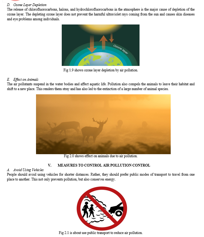 : In this paper, we walked you through the definition of air pollution and it\'s introduction, and then classified the various causes of air pollution and then it\'s different hazardous effects on us. The Pollution refers to any unwanted change that occurs in the environment.