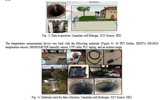 At TECNICAFE, the missing data were collected, which allowed us to continue with the design proposed in the research. For data collection, a coffee house was considered, which has a deep water well (aljibe) (Figure 3), facilitating the collection of field data and information on humidity and temperature. The aim was to identify the depth at which a good percentage of heat is transferred into the soil, making use of the walls of the well (aljibe). Three temperature sensors were installed at different depths (2m, 4m and 6m) [16].