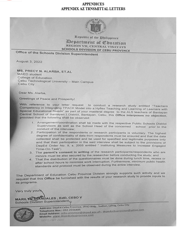 Special thanks to Dr. Rhea Mar A. Angtud, Dr. Nimfa D. Bongo, and Dr. Marilyn S. Andales for granting us the permission to conduct our research in your respective schools from your respective districts.