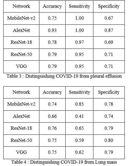 The research and the groundwork of this system is focused on detecting COVID-19 and eliminating the possibilities of all other lung infections. The system works on image processing of the X-ray and segmenting the processed image to six different neural networks such as AlexNet, MobileNet-v2, DenseNet-121, VGG and ResNet-50. The models are trained using the Caffe deep learning framework and the ImageNet database of chest X-rays. Based on the results from all the different neural networks, the condition of the patient is distinguished from other pleural infections.Chest radiographs are utilised to develop deep learning models to differentiate COVID-19 from other pleural illnesses, infections, and lung mass. Every 20 chest radiograph image was trained to discriminate COVID-19 from each of the three diseases using four distinct types of chest radiographs of the same or comparable infection. In differentiating COVID-19 from pleural effusion, MobileNet-v2 and AlexNet infrastructures have been deployed. ResNet-18 and AlexNet architectures are used to distinguish Covid-19 from Pneumonia. DenseNet-121 is used for detecting lung mass anomalies. The results from these have been tabulated and deployed to make one specific model analysis to suit all the kinds of detection. ResNet-18 architecture is then considered the most accurate and efficient in separating COVID-19 from pleural effusion,lung mass and pneumonia. The system would further focus on elaborating the detection of other ailments apart from COVID-19. Manifestation of the ailment could also be introduced to the system along with the detection.