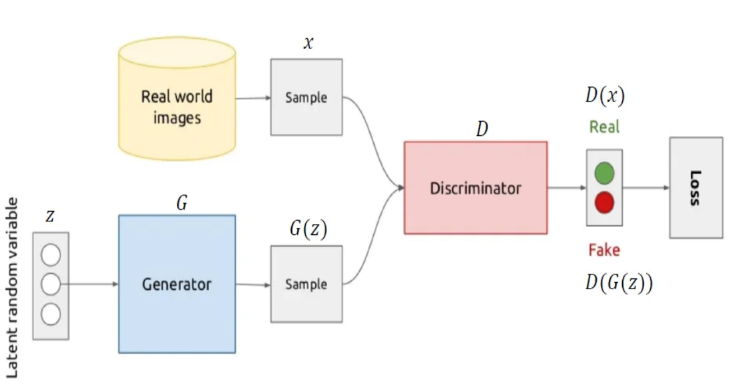 V(G,D) = ????x∼pdata[log(D(x))] + ????z∼pz[log(1−D(G(z)))]